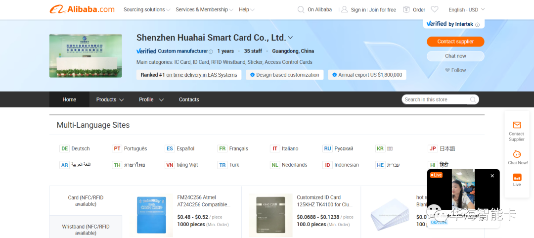 9月14日,华海智能卡公司为开通阿里巴巴国际站金品诚企认证,联合阿里巴巴委托第三方认证机构- Intertek(天祥),对公司进行实地考察认证。